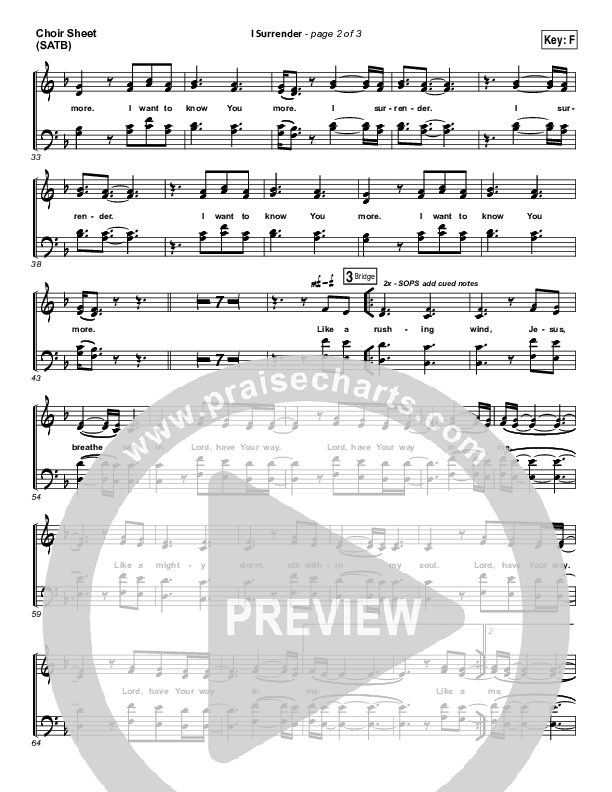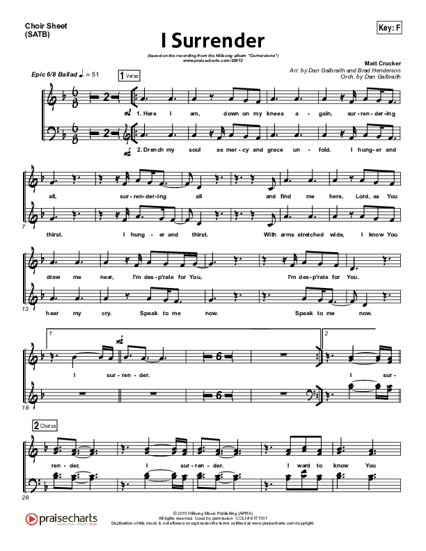 Download the Choir Sheet for I Surrender by Hillsong Worship, from the album Cornerstone (Deluxe). This song was arranged by Daniel Galbraith / Brad Henderson in the key of E.