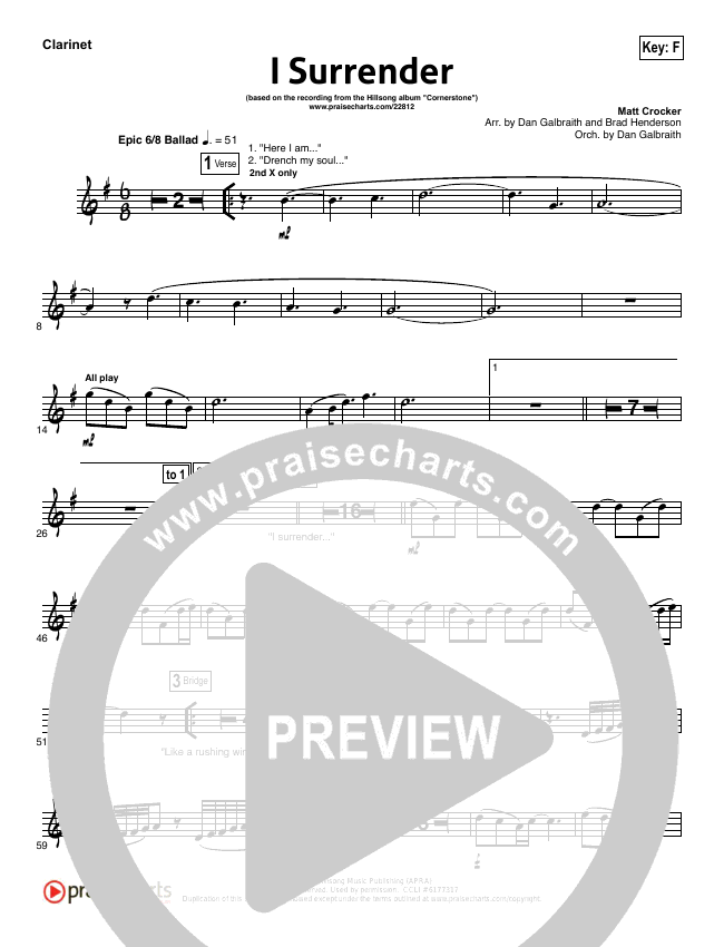 Download the Orchestration wind parts for I Surrender by Hillsong Worship, from the album Cornerstone (Deluxe). This song was arranged by Daniel Galbraith / Brad Henderson in the key of E.