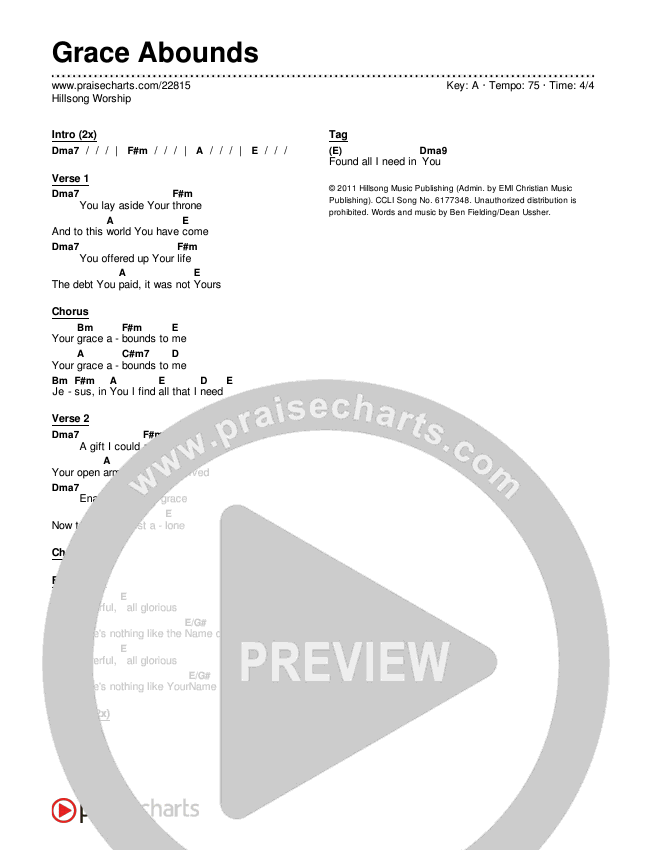 Download the PDF Chord Charts for Grace Abounds by Hillsong Worship, from the album Cornerstone (Deluxe). This song was arranged by Daniel Galbraith / Jared Haschek in the key of A, Ab.