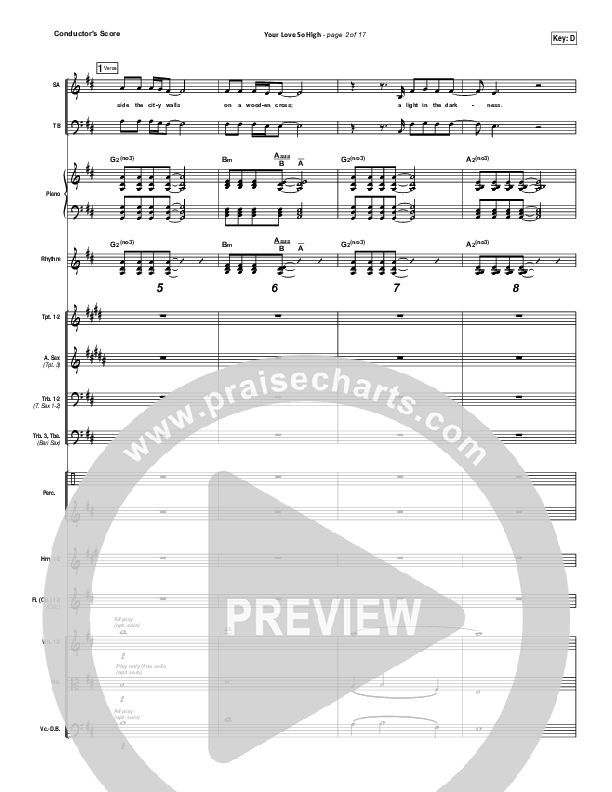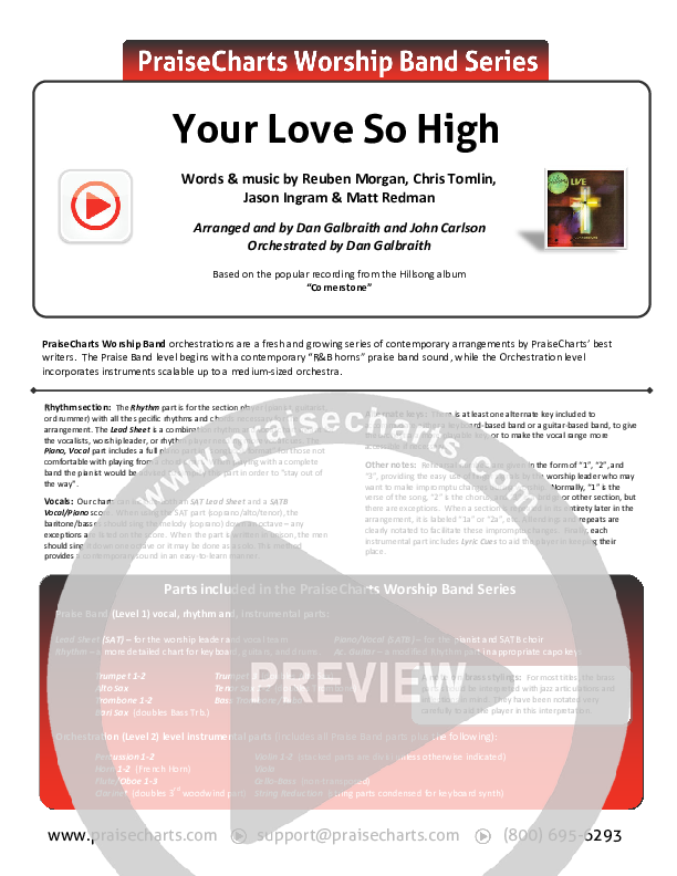 Download the Orchestration for Your Love So High by Hillsong Worship, from the album Cornerstone (Deluxe). This song was arranged by Daniel Galbraith / John Carlson in the key of C, D.