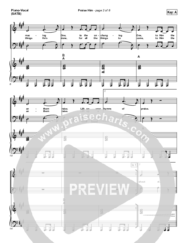 Download the sheet music for Praise Him by Hillsong Worship, from the album Cornerstone (Deluxe). This song was arranged by Daniel Galbraith / Brad Henderson in the key of A, Bb.