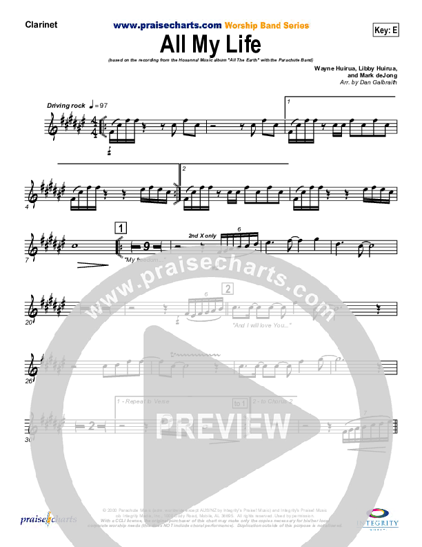 Download the Orchestration for All My Life by Parachute Band, from the album All The Earth. This song was arranged by Daniel Galbraith in the key of E.