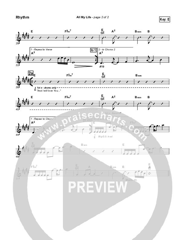 Download the Rhythm Chart for All My Life by Parachute Band, from the album All The Earth. This song was arranged by Daniel Galbraith in the key of E.