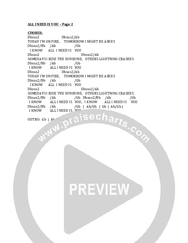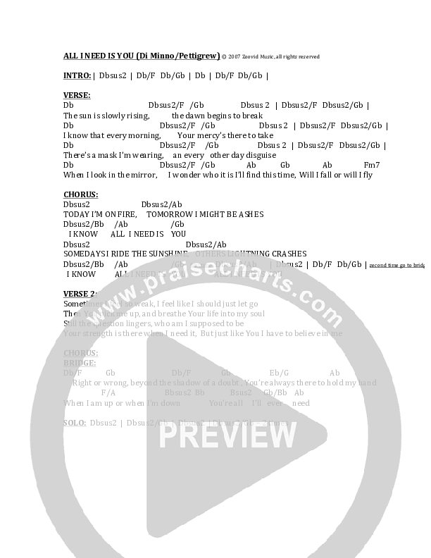 Download the PDF Chord Charts for All I Need Is You by Dave Pettigrew, from the album Every Minute Miracles.