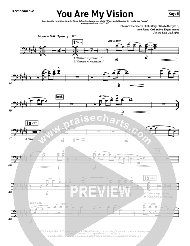Download the Trombone 1,2 sheet music for You Are My Vision by Rend Collective, from the album Homemade Worship By Handmade People. This song was arranged by Daniel Galbraith in the key of E, Eb.