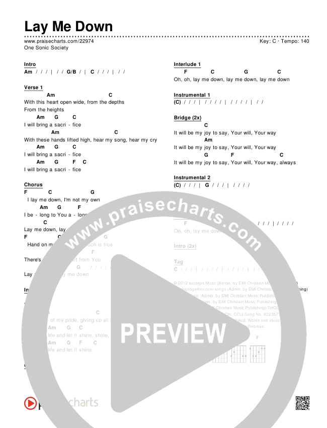 Lay Me Down Chords PDF (One Sonic Society)