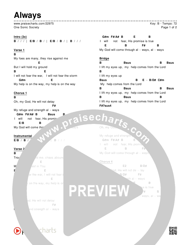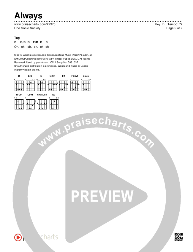 Download the PDF Chord Charts for Always by One Sonic Society, from the album Live From The Tracking Room.