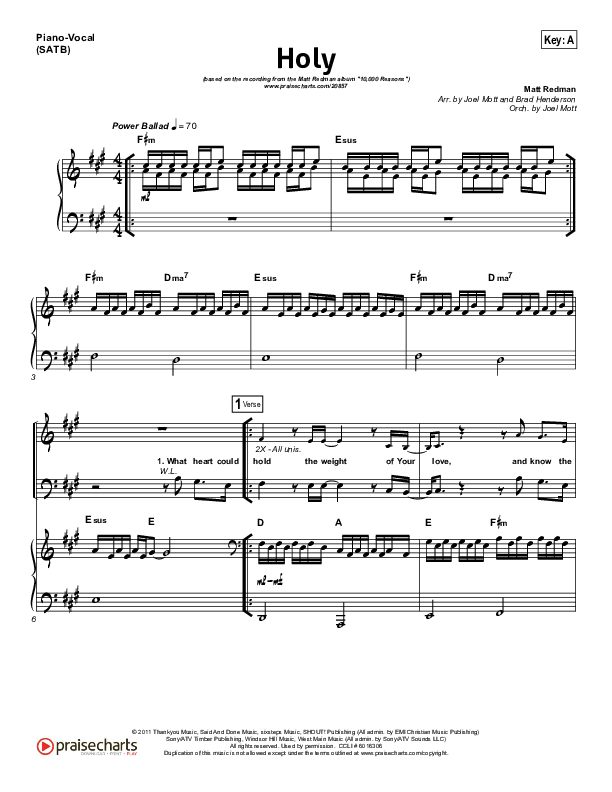 Holy Piano/Vocal (SATB) (One Sonic Society)