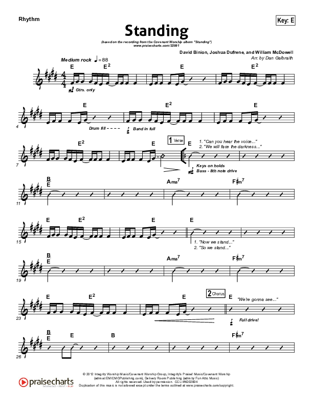 Download the Rhythm Chart for Standing by Covenant Worship, from the album Standing. This song was arranged by Daniel Galbraith in the key of E, F.