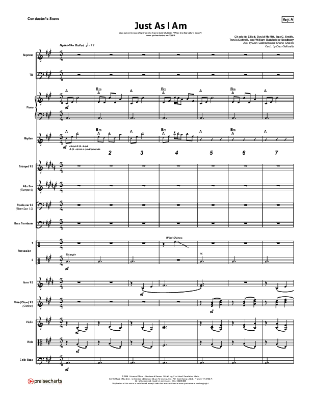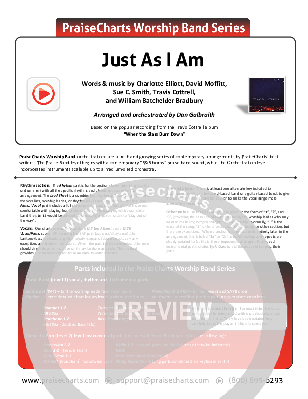 Download the Orchestration for Just As I Am by Travis Cottrell, from the album When The Stars Burn Down. This song was arranged by Daniel Galbraith in the key of A, Bb.