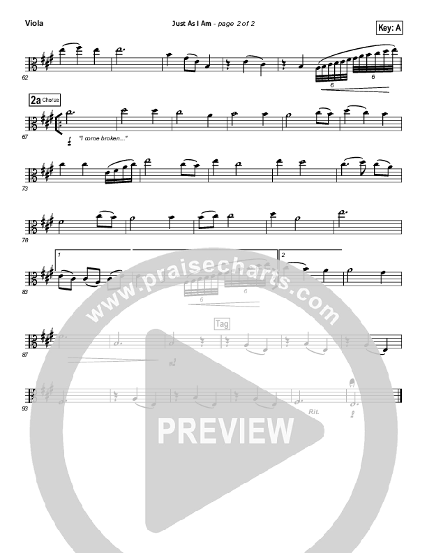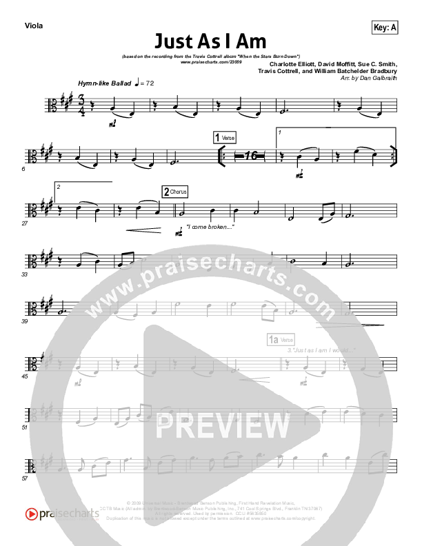 Download the Viola sheet music for Just As I Am by Travis Cottrell, from the album When The Stars Burn Down. This song was arranged by Daniel Galbraith in the key of A, Bb.