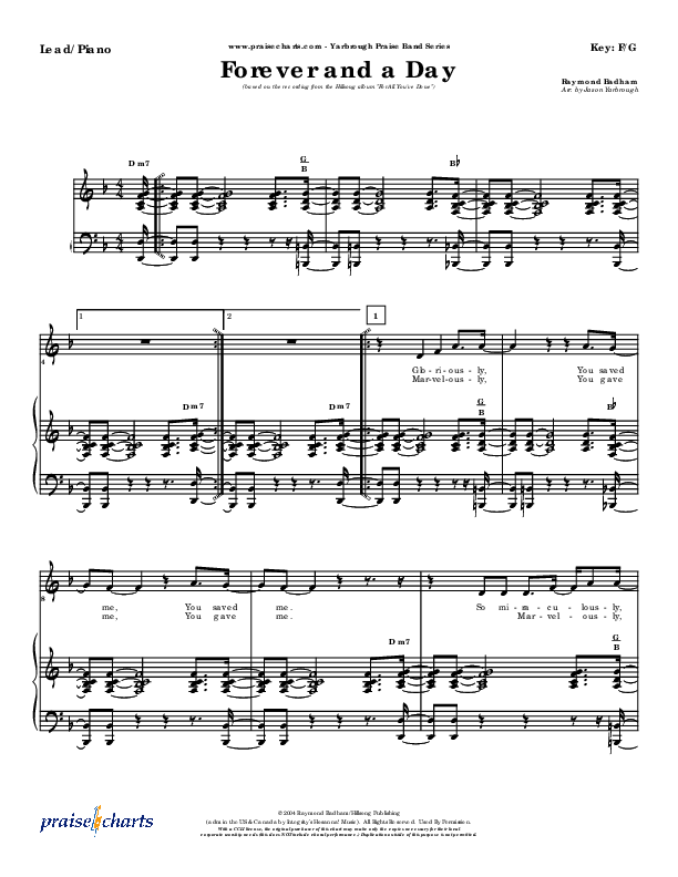 Download the sheet music for Forever And A Day by Hillsong Worship, from the album For All You've Done. This song was arranged by Jason Yarbrough in the key of F, G.
