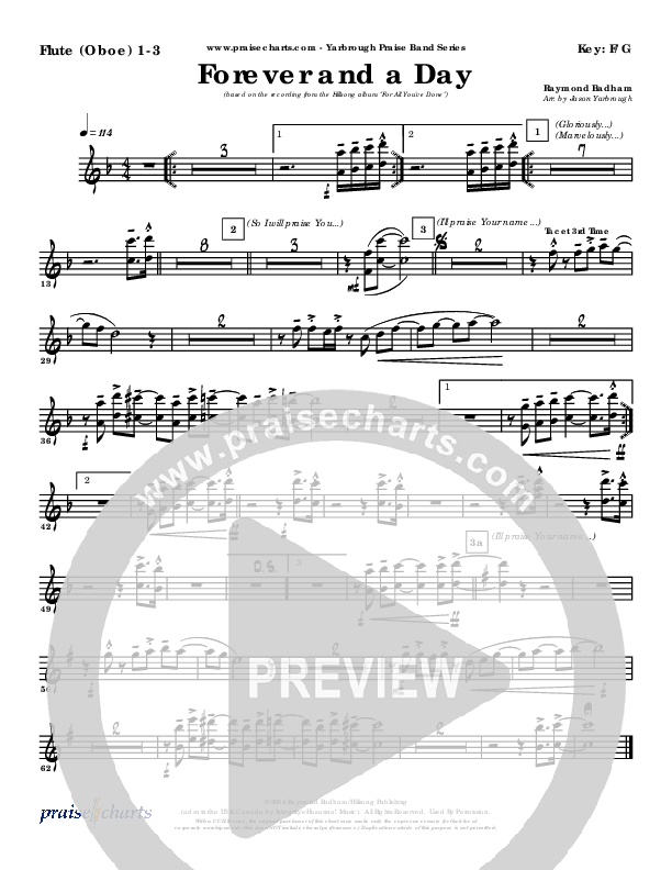 Download the Flute/Oboe sheet music for Forever And A Day by Hillsong Worship, from the album For All You've Done. This song was arranged by Jason Yarbrough in the key of F, G.