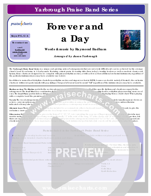 Download the Orchestration for Forever And A Day by Hillsong Worship, from the album For All You've Done. This song was arranged by Jason Yarbrough in the key of F, G.