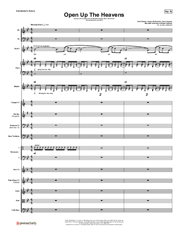Download the Orchestration for Open Up The Heavens by Meredith Andrews, from the album Worth It All. This song was arranged by Daniel Galbraith in the key of B, Bb, C, D.