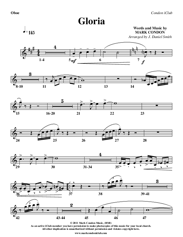 Gloria Oboe Sheet Music PDF (Mark Condon)
