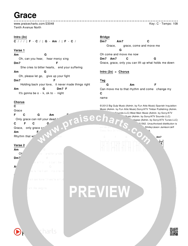 Download the PDF Chord Charts for Grace by Tenth Avenue North, from the album The Struggle.
