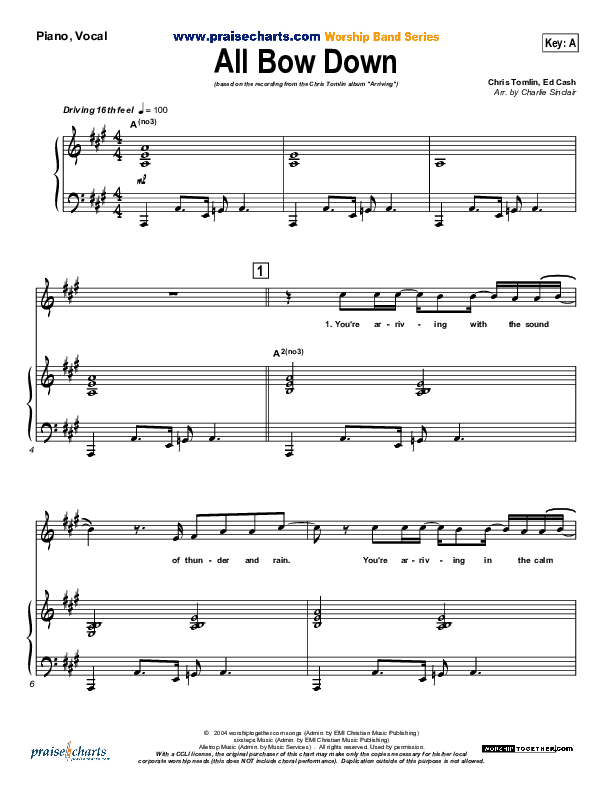 Download the sheet music for All Bow Down by Chris Tomlin, from the album Arriving.