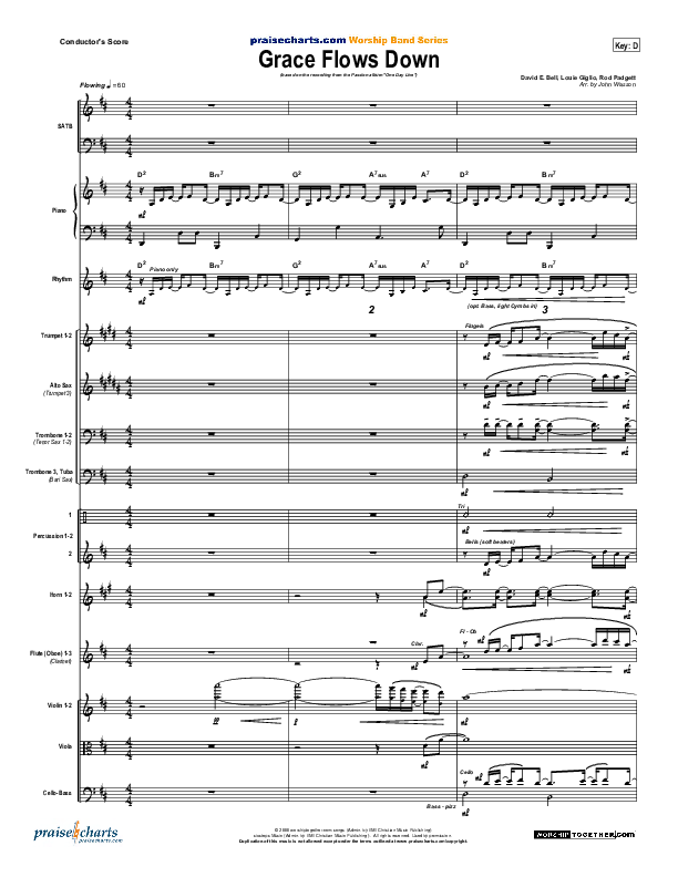 Download the Orchestration for Grace Flows Down by Christy Nockels / Passion, from the album Passion: One Day Live. This song was arranged by John Wasson in the key of D, Eb.