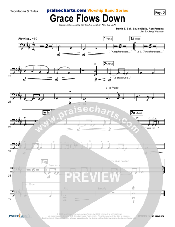 Download the Trombone 3/Tuba sheet music for Grace Flows Down by Christy Nockels / Passion, from the album Passion: One Day Live. This song was arranged by John Wasson in the key of D, Eb.