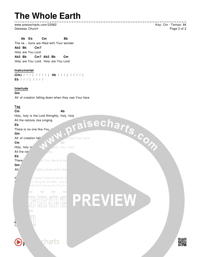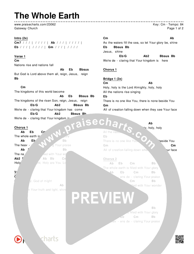 Download the PDF Chord Charts for The Whole Earth by Gateway Worship, from the album Forever Yours. This song was arranged by Daniel Galbraith in the key of Bm, Cm.