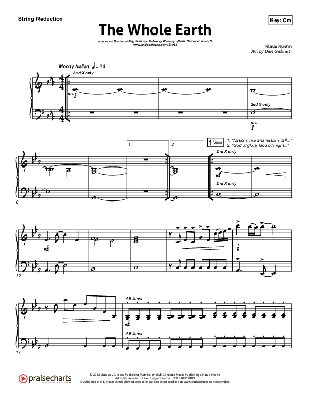 Download the Orchestration for The Whole Earth by Gateway Worship, from the album Forever Yours. This song was arranged by Daniel Galbraith in the key of Bm, Cm.