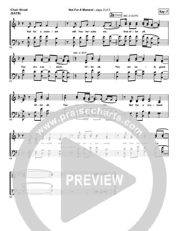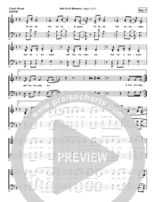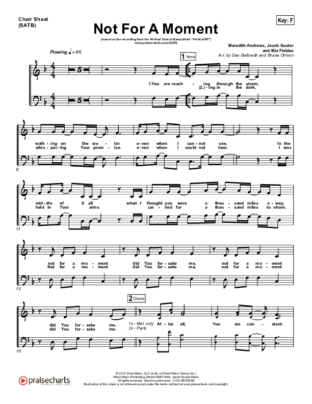 Download the Choir Sheet for Not For A Moment (After All) by Vertical Worship, from the album Vertical EP. This song was arranged by Daniel Galbraith in the key of F, G.