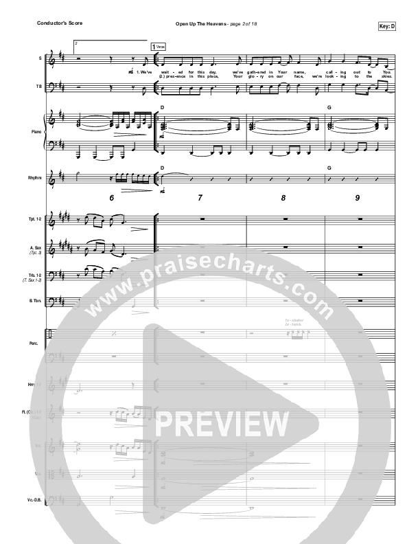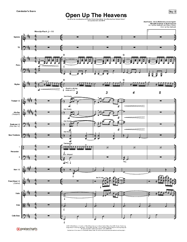 Download the Orchestration for Open Up The Heavens by Vertical Worship, from the album Live Worship From Vertical Church. This song was arranged by Daniel Galbraith in the key of A, Ab, B, Bb, C, D.