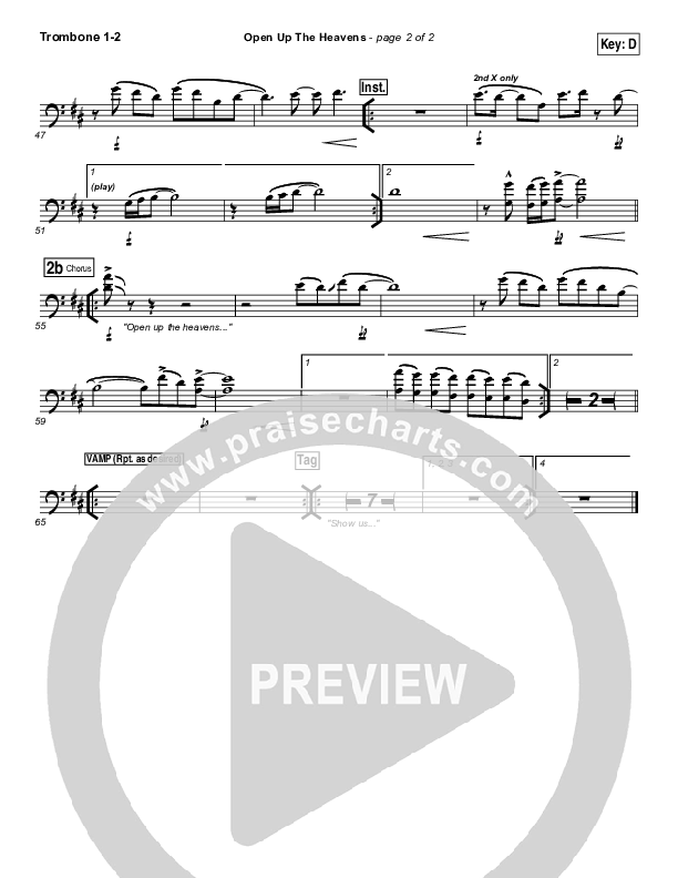 Open Up The Heavens Trombone Sheet Music PDF (Vertical Worship)
