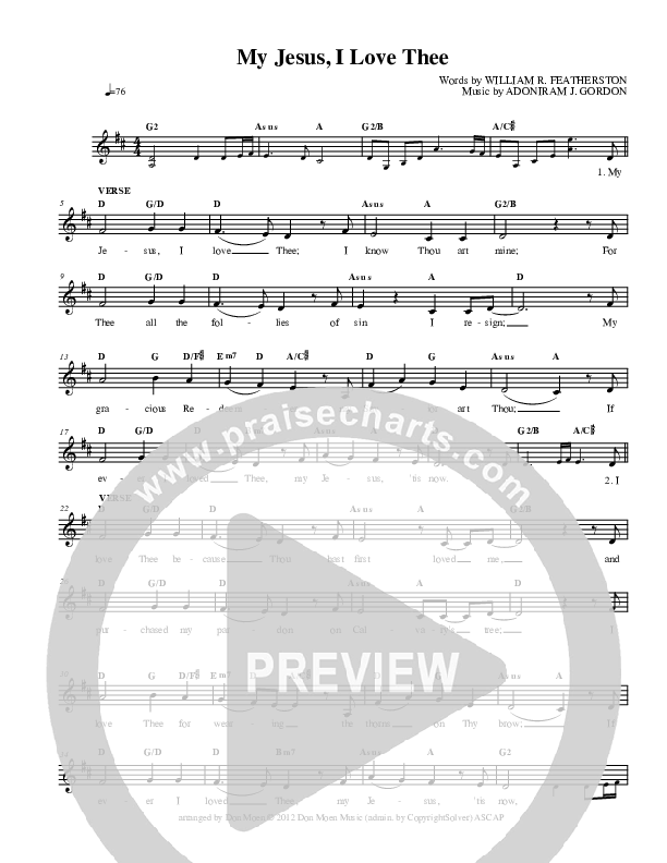 Download the sheet music for My Jesus I Love Thee by Don Moen, from the album Hymnbook.