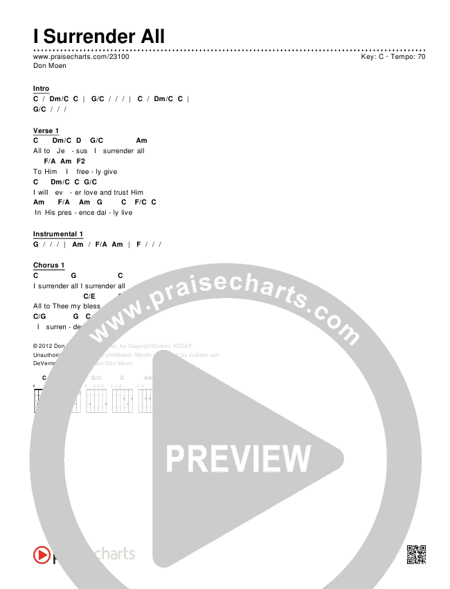 Download the PDF Chord Charts for I Surrender All by Don Moen, from the album Hymnbook.