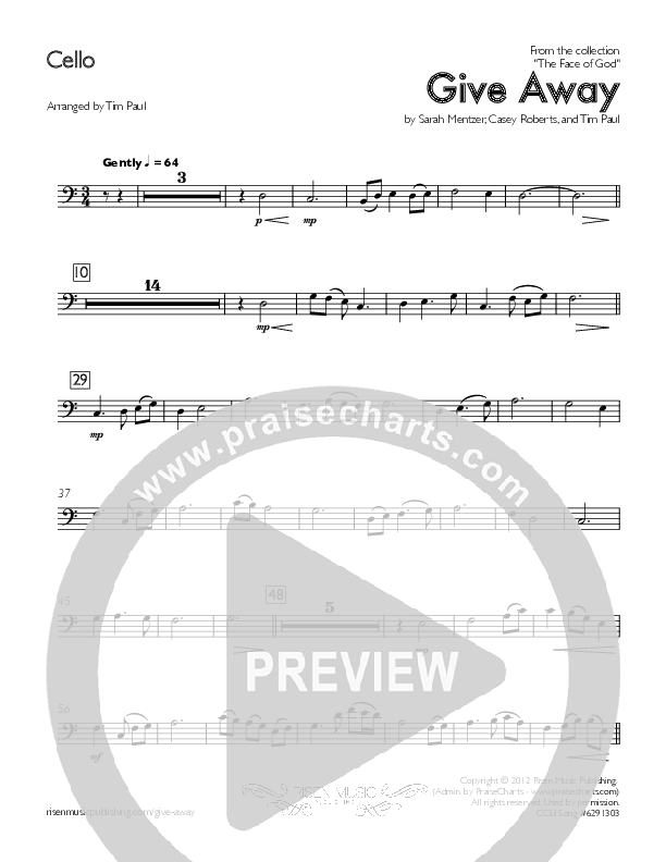 Download the Cello sheet music for Give Away by Concord Worship, from the album The Face Of God.