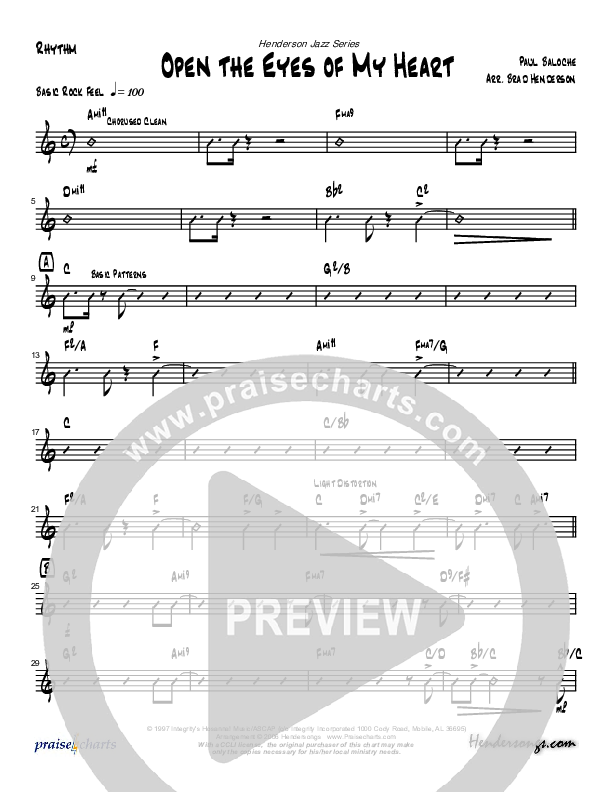 Download the Rhythm Chart for Open The Eyes Of My Heart (Instrumental) by Brad Henderson, from the album Henderson Jazz Series. This song was arranged by Brad Henderson in the key of C.