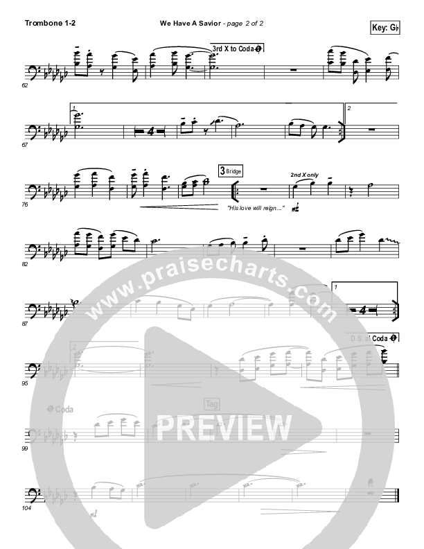 Download the Trombone 1,2 sheet music for We Have A Savior by Hillsong Worship, from the album We Have A Savior. This song was arranged by Daniel Galbraith in the key of G, Gb.