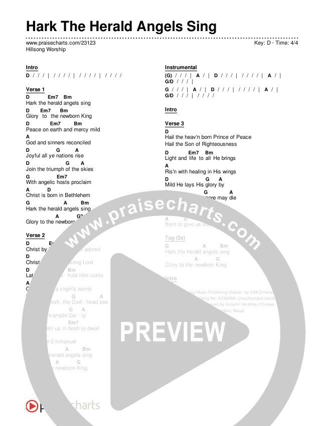 Hark The Herald Angels Sing Chords PDF (Hillsong Worship)