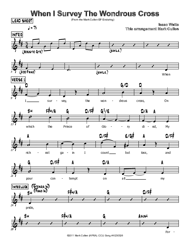Download the sheet music for When I Survey The Wondrous Cross by Mark Cullen, from the album Enduring.