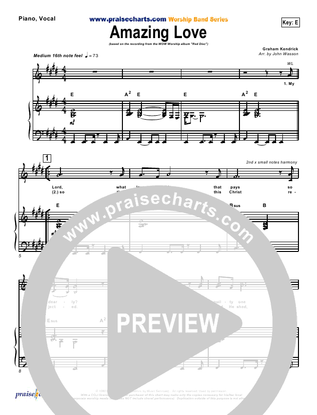 Download the sheet music for Amazing Love by Graham Kendrick, from the album WOW Worship Red. This song was arranged by John Wasson in the key of D, E.