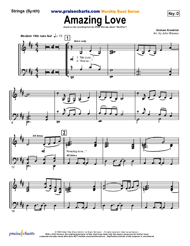 Download the Orchestration for Amazing Love by Graham Kendrick, from the album WOW Worship Red. This song was arranged by John Wasson in the key of D, E.
