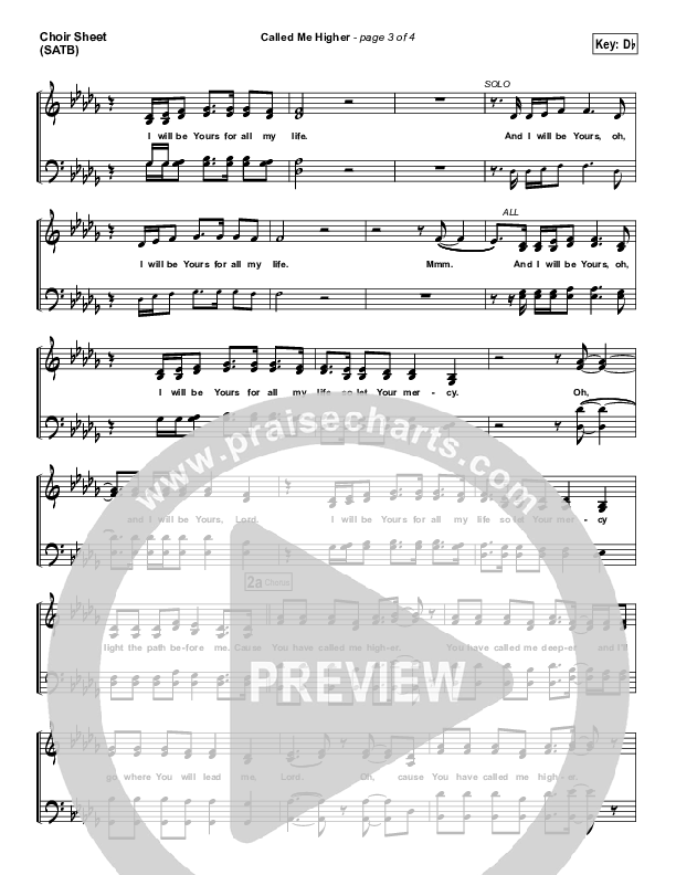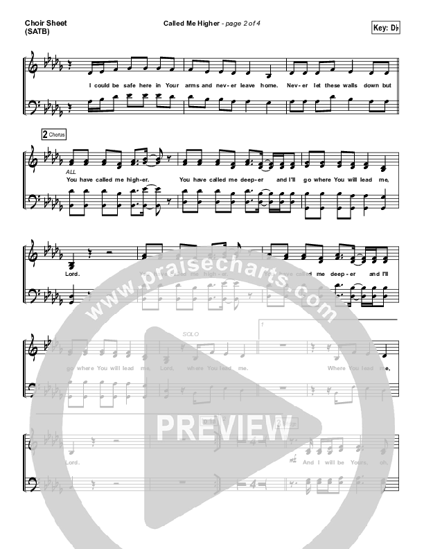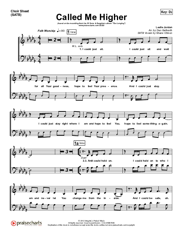 Download the Choir Sheet for Called Me Higher by All Sons & Daughters, from the album The Longing. This song was arranged by Daniel Galbraith in the key of D, Db.