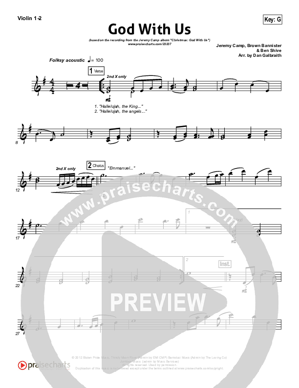 Download the Orchestration string parts for God With Us by Jeremy Camp, from the album Christmas God With Us. This song was arranged by Daniel Galbraith in the key of G, Gb.