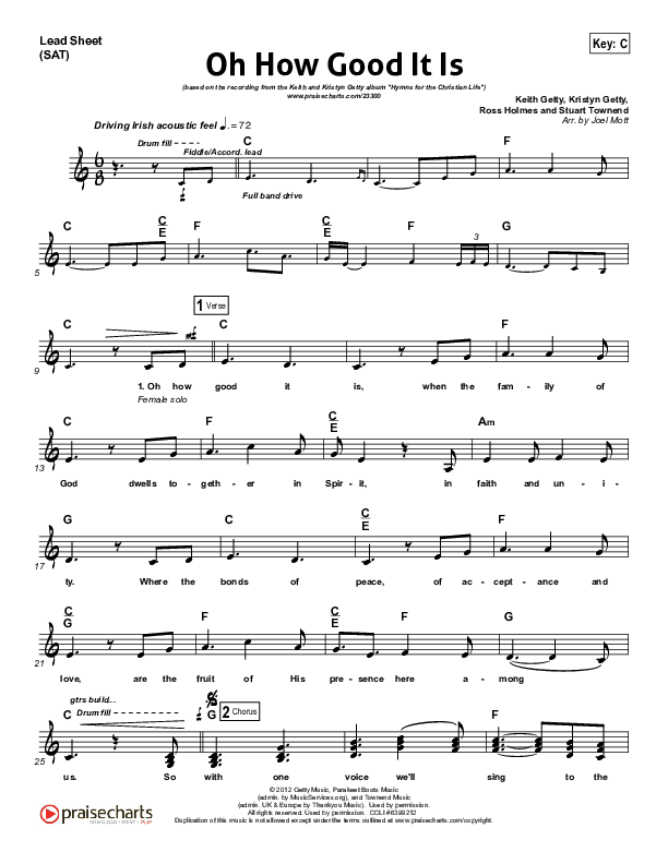 Oh How Good It Is Sheet Music PDF (Keith & Kristyn Getty)