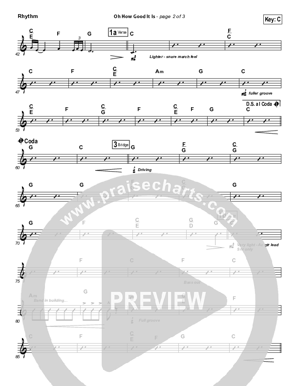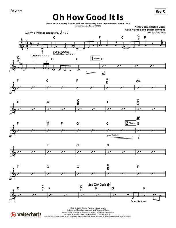 Download the Rhythm Chart for Oh How Good It Is by Keith & Kristyn Getty, from the album Hymns For The Christian Life. This song was arranged by Joel Mott in the key of Bb, C.