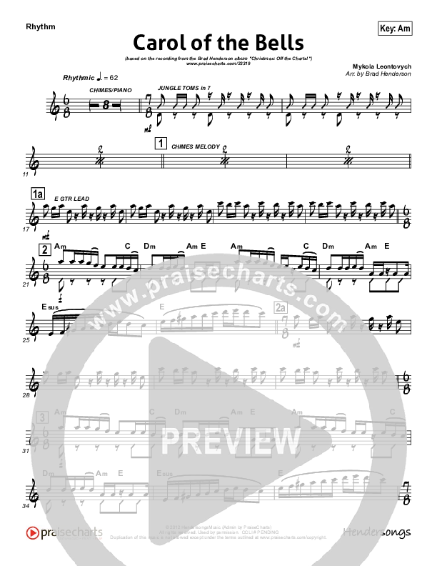 Download the piano sheet for Carol Of The Bells (Instrumental) by Brad Henderson, from the album Christmas Off The Charts. This song was arranged by Brad Henderson in the key of Am.