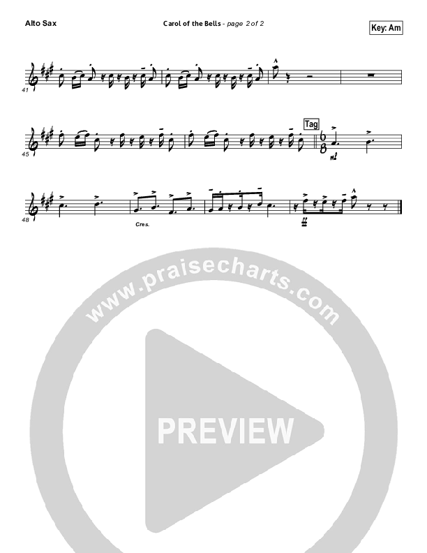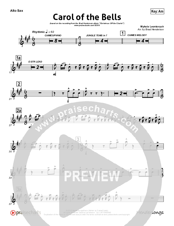 Download the AltoSax sheet music for Carol Of The Bells (Instrumental) by Brad Henderson, from the album Christmas Off The Charts. This song was arranged by Brad Henderson in the key of Am.