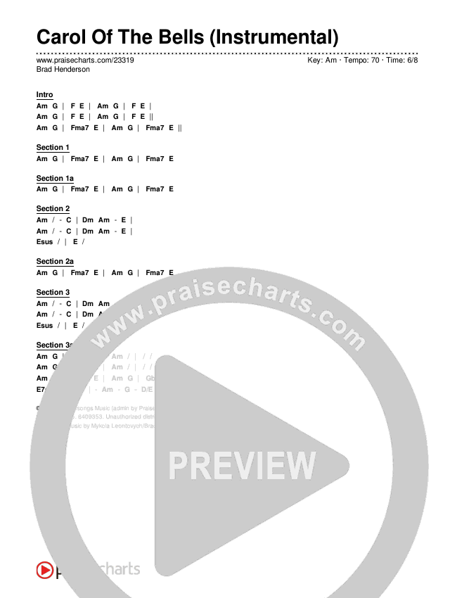 Carol Of The Bells (Instrumental) Chords PDF (Brad Henderson)