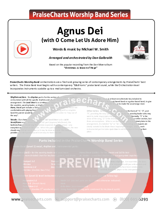 Download the Orchestration for Agnus Dei (with O Come Let Us Adore Him) by Don Moen, from the album Christmas: A Season Of Hope. This song was arranged by Daniel Galbraith in the key of Ab, G.