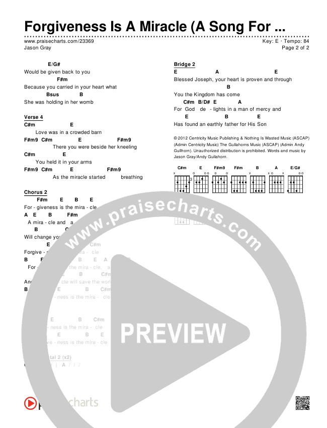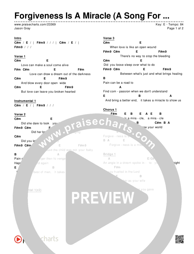 Download the PDF Chord Charts for Forgiveness Is A Miracle (A Song For Joseph) by Jason Gray, from the album Christmas Stories: Repeat The Sounding Joy.
