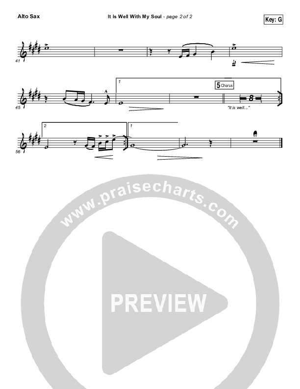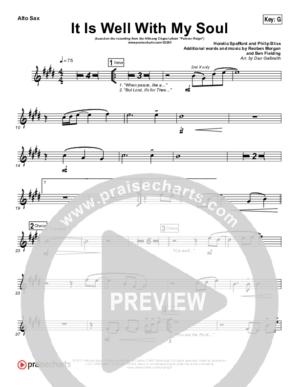 Download the AltoSax sheet music for It Is Well With My Soul by Hillsong Worship / Hannah Hobbs, from the album Forever Reign. This song was arranged by Daniel Galbraith in the key of A, G.