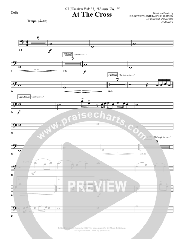 At The Cross Cello Sheet Music PDF (G3 Worship)