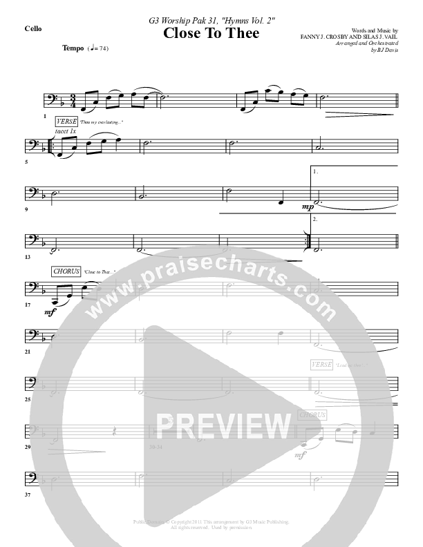Download the Cello sheet music for Close To Thee by G3 Worship, from the album Hymns Volume 2.